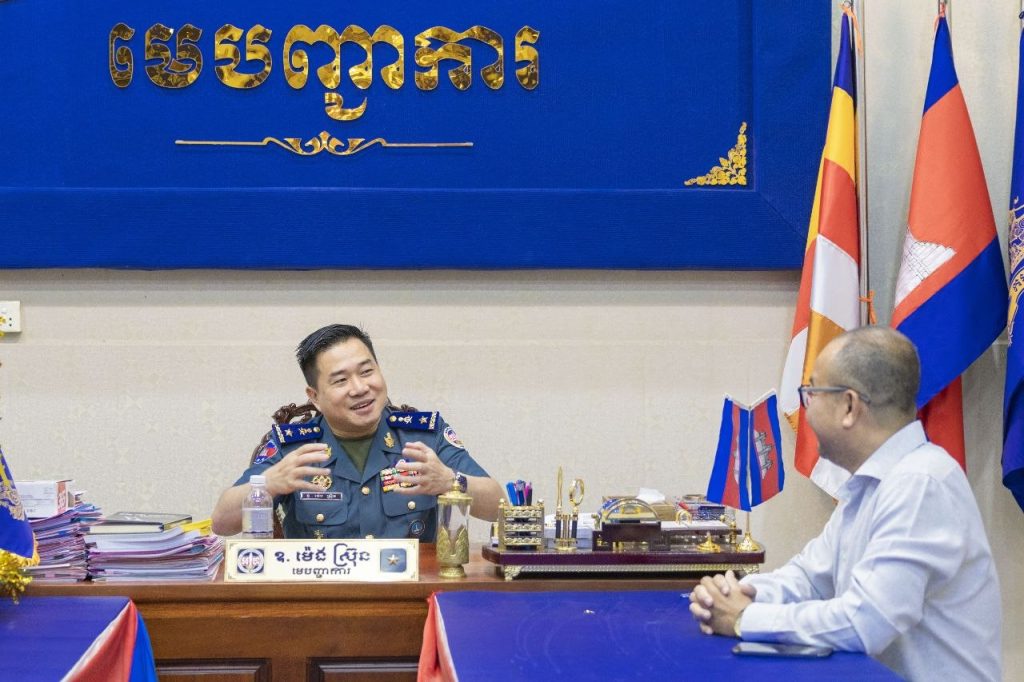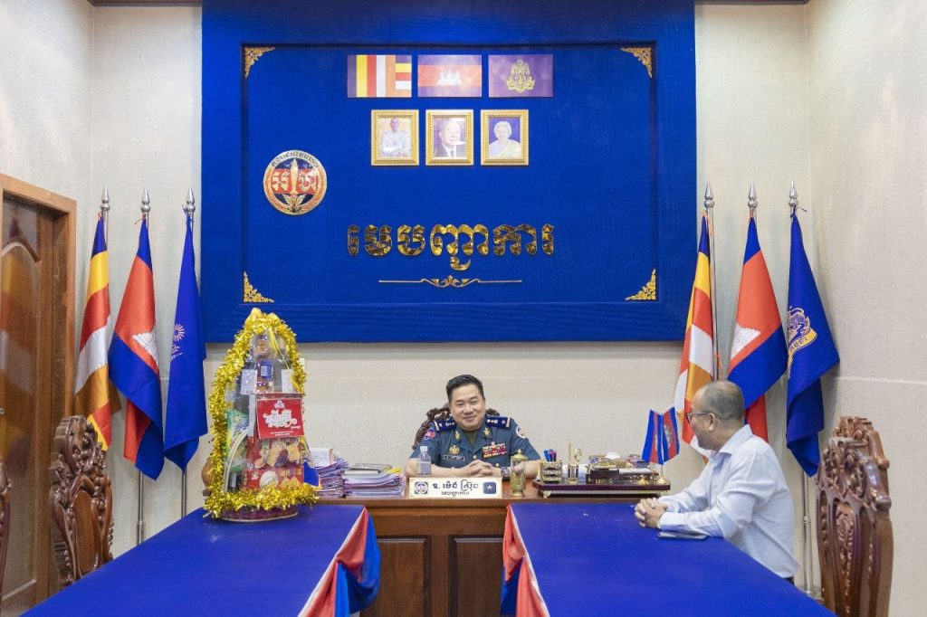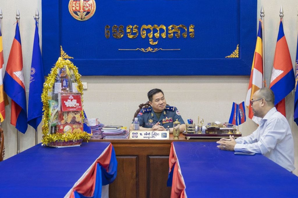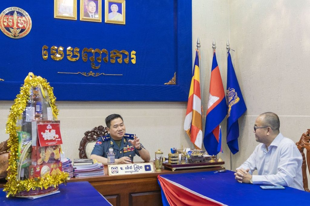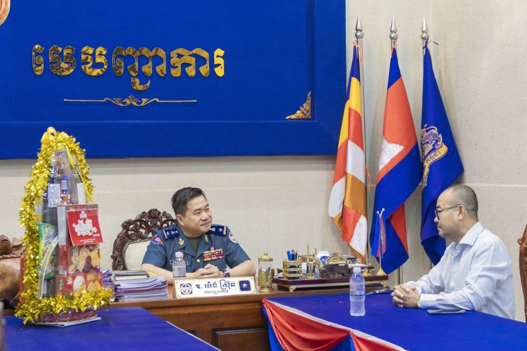 ខេត្តកំពង់ស្ពឺ៖នារសៀលថ្ងៃទី៣ ខែមេសា ឆ្នាំ២០២៦ លោកឧត្តមសេនីយ៍ត្រី ម៉េង ស្រ៊ុន មេបញ្ជាការ កងរាជអាវុធហត្ថខេត្តកំពង់ស្ពឺ បានអញ្ជើញទទួលជួបសំណោះសំណាលជាមួយ លោក លឹម វាសនា នាយកអតិថិជនសហគ្រាស ជាតំណាងឲ្យក្រុមហ៊ុន Metfone ប្រចាំខេត្តកំពង់ស្ពឺ ដែលបាននាំយកនូវកាដូរអនុស្សាវរីយ៍ និងជូនពរជ័យដល់លោកឧត្តមសេនីយ៍ត្រី ម៉េង ស្រ៊ុន រួមនឹងកម្លាំងកងរាជអាវុធហត្ថខេត្តកំពង់ស្ពឺទាំងអស់ ក្នុងឱកាសអបអរសាទរពិធីបុណ្យចូលឆ្នាំថ្មីប្រពៃណីជាតិខ្មែរខាងមុខនេះផងដែរ។
